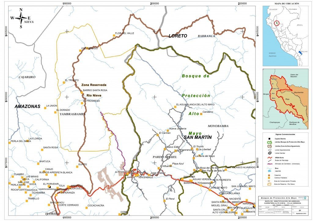 Esta carretera va desde el caserío de Alto Nieva hacia Villa hermosa y con proyección hasta Flor del Valle, en el distrito de Yambrasbamba, Región Amazonas, muy cerca de la Zona Reservada Río Nieva y dentro del Área de Conservación Privada Abra Patricia de ECOAN.