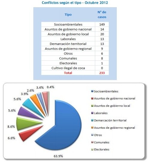 La Defensoría del Pueblo informó que en el mes octubre se reportaron 233 conflictos sociales, de los cuales 149 son de carácter socioambiental. Del total, 167 se encuentran activos y 66 en estado latente.